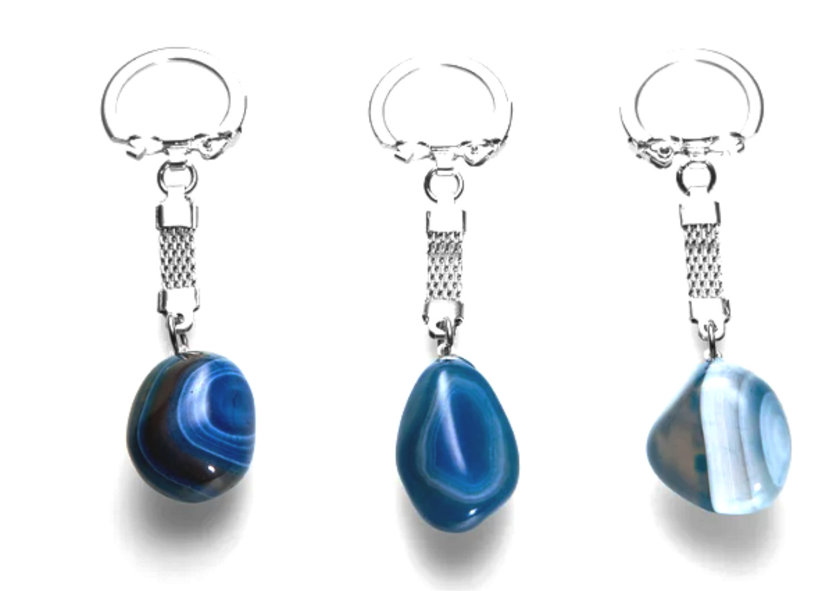 Agates are distinguished by their colourfulness, but this species attracts attention with its blue hues. Cold solutions are used to dye the stones blue, in which they are soaked for several weeks. Of course, the stripes so typical of agates are also present. The raw material comes from Brazil.