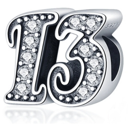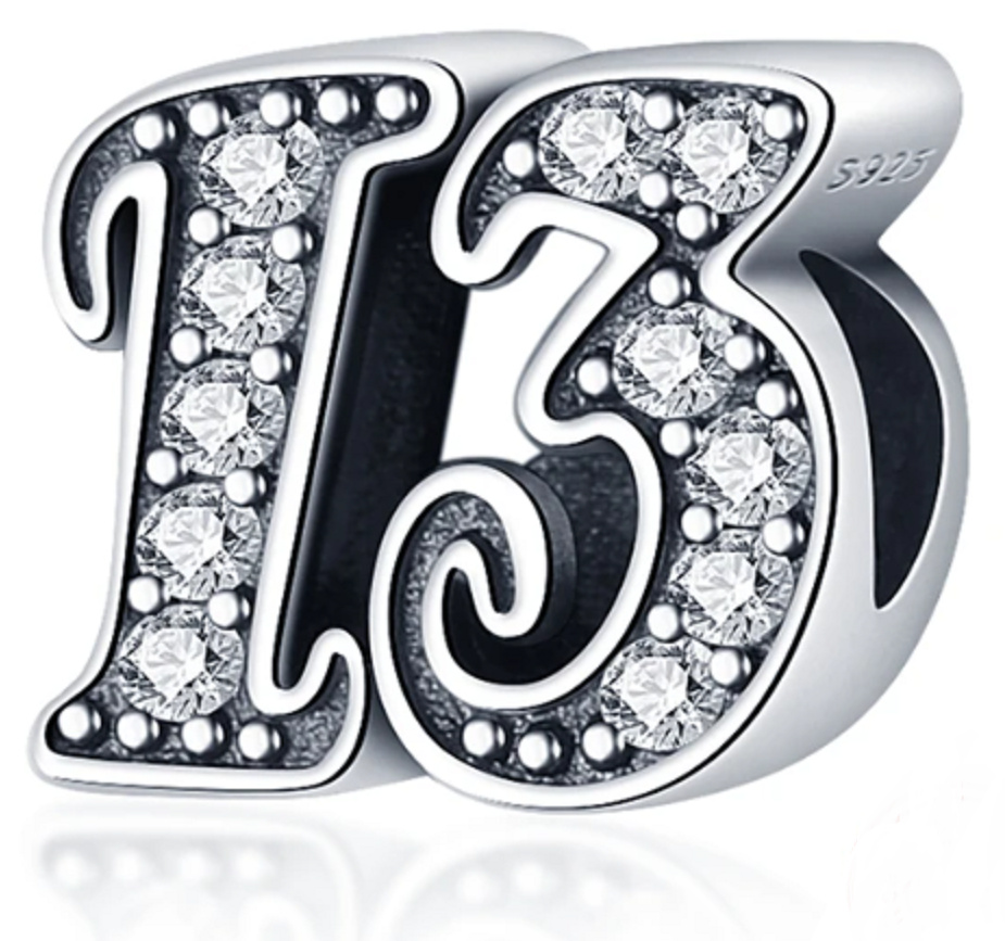 Tento korálek pro náramky, vyrobený na oslavu 13. výročí nebo nezbedných 13 narozenin, je zvýrazněn kubickými Zirkony a korálkovými detaily. Andělské číslo 13 varuje, že se ve vašem životě mohou objevit nějaké otřesy (změny). Pamatujte, že tohle všechno se děje jen a pouze z důvodu vašeho duchovního posunu na vyšší úroveň. A proto, abyste se mohli posunout výš a dál a začít tvořit, je potřeba to staré „zbourat“, uklidit a vytvořit místo pro nové.