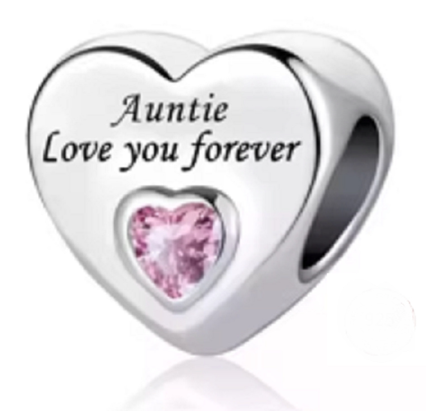 Řekněte své neteři tímto korálkem se srdíčkem, že ji budete mít v srdci napořád. Láska je nejvíc co můžeme od života dostat. Korálek je doplněn o růžový kubický zirkon a má vyrytý text: "Auntie love you forever" - Teta tě miluje navždy. Ideální dárek pro všechny milované neteře.