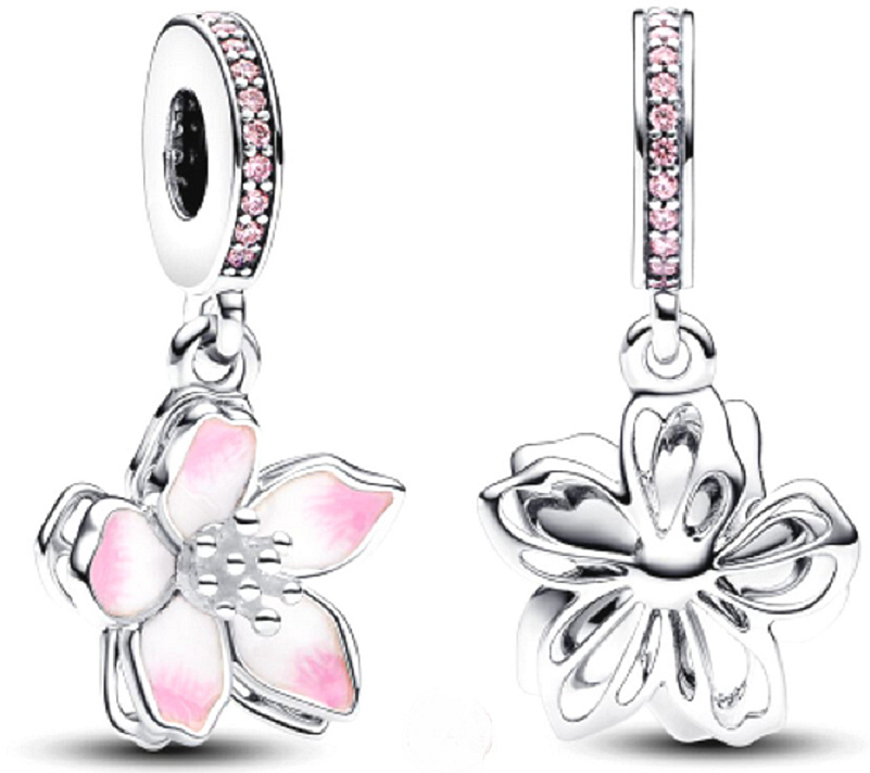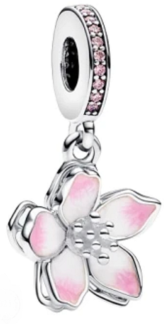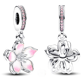 Oslavte první známky jara s přívěskem květ Třešně. Díky ručně aplikovanému růžovému a bílému smaltu a zvýrazněnému třpytivými růžovými kubickými Zirkony se okvětní lístky na třešňovém květu mírně otáčejí, jako by do nich foukal vánek. Upravte jej s jinými šperky pro teplý jarní vzhled.