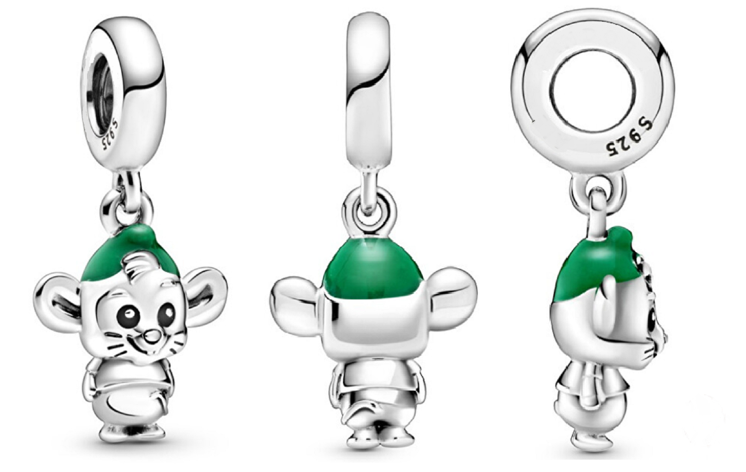 Ručně vyrobený přívěsek je šperk inspirován jednou ze dvou myší, Gusem, se kterými se Disney Popelka spřátelí. Myška, která visí na háčku, má oči namalované ručně naneseným černým smaltem, krátkou košili, vyřezávané vousky, ocas, velké uši a vlasy vycházející z klobouku zdobeného ručně nanášeným zeleným smaltem. Spárujte toto kouzlo s dalšími šperky, které máte rádi, inspirovanými postavičkami od Disneyho a vyprávějte o svém dobrodružství.