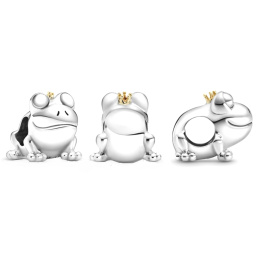 Noste upomínku na víru v pravou lásku s kouzlem žabího prince. Tento přívěsek ručně vyrobený obsahuje usmívající se žábu s velkýma očima a mikrokorálkovými chodidly s miniaturní korunou. Toto pohádkové kouzlo, inspirované myšlenkou, že musíte políbit pár žab, abyste konečně našli svého prince, vnáší do každého oblečení nebo příležitosti trochu rozmaru.