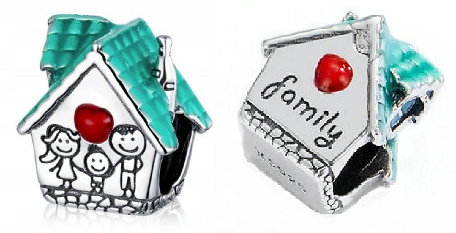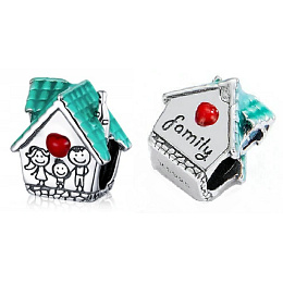 Ten dům, kde bydlí láska, prý není k nalezení, ten dům, kde bydlí láska, určitě daleko není, je vysoko nebo nízko, určitě však blízko, ten dům, kde bydlí láska, musí tu někde být. Korálek ve tvaru domečku s obrázkem šťastné rodiny, zdobený barevným smaltem jistě "oživí" ne jeden náramek.