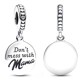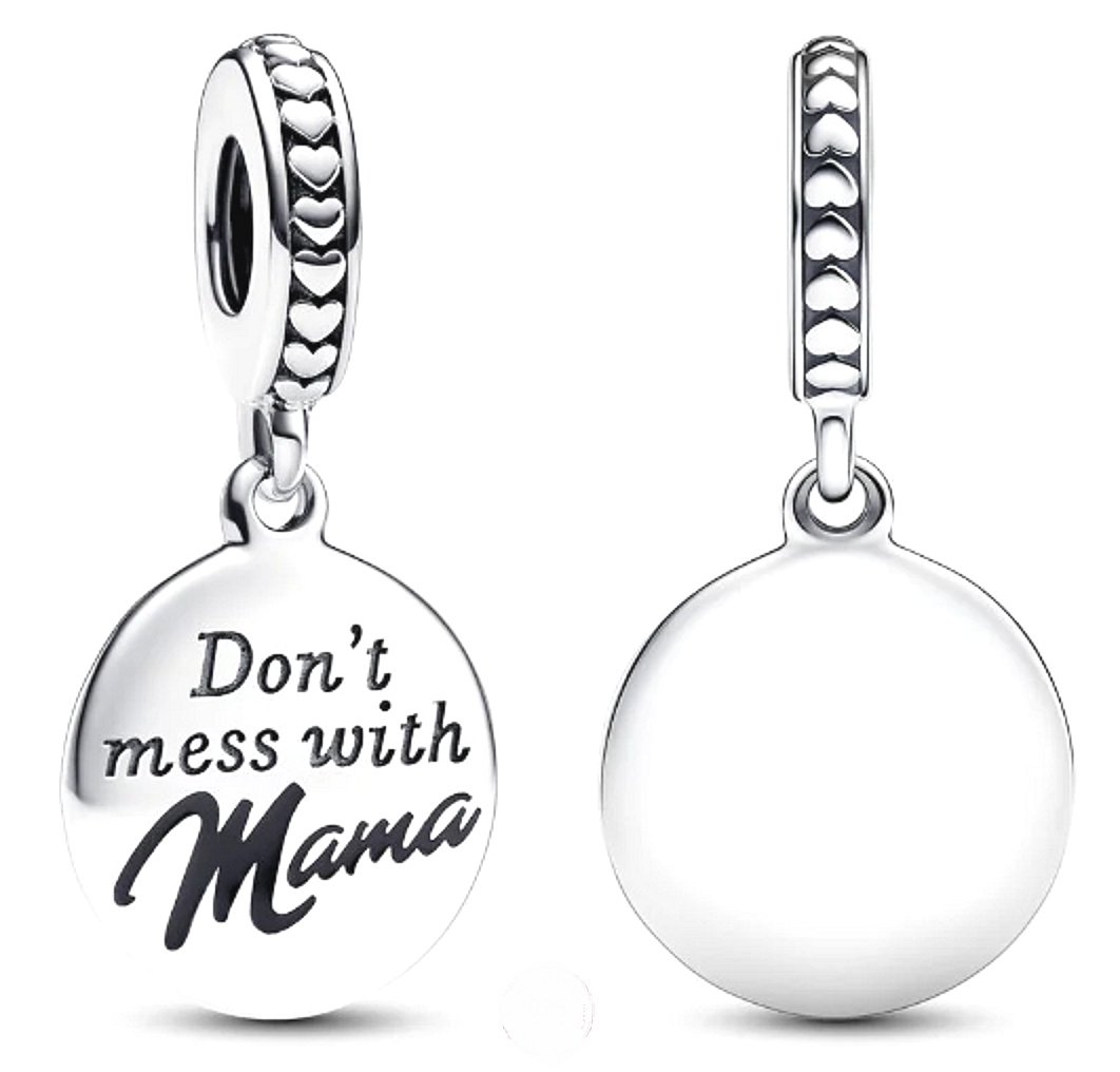 Kousek, který oslavuje mateřství s trochou humoru. Toto kouzlo obsahuje kulatý disk s vyrytým nápisem "Nezahrávejte si s mámou." Jedinečný dotek kouzla spočívá ve smaltovaném nápisu „Mama“, který dodává černý šmrnc. Kauci zdobí vyvýšená srdce a linie. Čím je zvláštní? Zadní strana je připravena pro váš osobní kontakt s personalizovaným rytím, aby byla ještě jedinečnější. Darujte ji jako speciální žeton pro svou maminku jako hravou poctu radosti z mateřství.