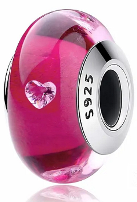 Luxusní a propracovaný korálek z růžového Murano skla a Zirkonu ve tvaru srdce. Darujte vašemu blízkému kus vašeho srdce a nechte je zazářit jak ve dne, ale i večer.