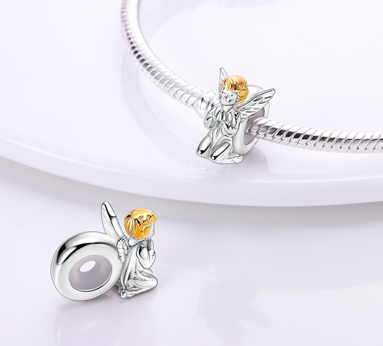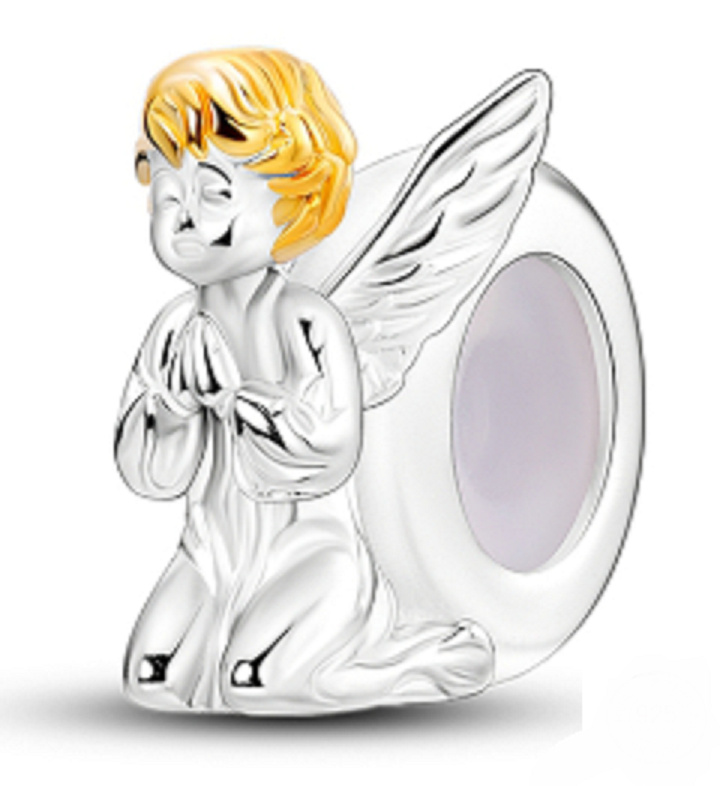 Distanční přívěsek s modlícím se andělem, navržený s pozlacenými křídly.