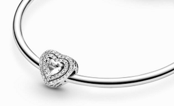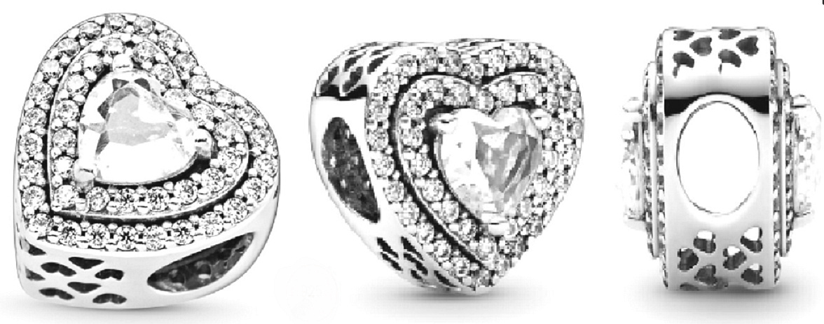 Šiřte lásku s tímto jiskřivým srdcem. Šperk má uprostřed vyražený kámen ve tvaru srdce obklopený dvěma řadami bezbarvých kamenů. Konec okraje zdobí vzor s vyřezávanými srdíčky. Noste přívěsek na svém oblíbeném náramku spárováním s dalšími jednoduchými přívěsky pro oslnivý vzhled, který nezůstane bez povšimnutí.