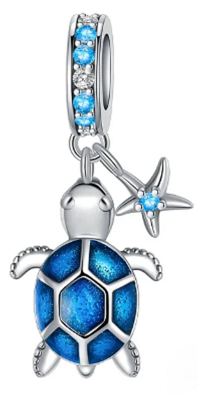Noste s sebou želví moudrost. Nikdy nikam nespěchá, má své vlastní tempo a klidnou povahu. Často se o ní říká, že je tou nejmoudřejší ve světě zvířat. Visací přívěsek Mořská želva je inspirovaný poklidnými stvořeními z hlubin moře. Přívěsek s mořskou Želvou zdobí světle modré krystaly. Vyřezávaný vzor na bříšku želvy vytváří krásný efekt.