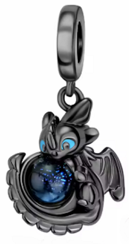Tento okouzlující přívěsek je inspirován drakem Bezzubka z animovaného filmu Jak vycvičit draka. Bezzubka je symbolem přátelství, odvahy a věrnosti, a patří mezi nejoblíbenější dračí postavy pohádkového světa. Tmavý dráček s výraznýma očima chrání třpytivou kouli připomínající noční oblohu plnou hvězd – symbol snů, magie a nekonečných možností. Šperk působí tajemně, ochranitelsky a zároveň velmi roztomile.