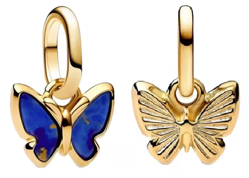 Vneste do svého stylu lehkost a kouzlo přírody s tímto něžným přívěskem ve tvaru Motýla. Symbol proměny, radosti a vnitřní svobody ožívá v elegantním provedení s křídly v odstínech jemné modři, které evokují letní nebe a klidné dny plné světla. zlatavé akcenty a detailní zpracování imitace lapis lazuli dodávají šperku rafinovaný nádech luxusu a hloubky. Na zadní straně přívěsku se skrývá motiv slunečního odlesku – hravý prvek, který dotváří jeho přírodní kouzlo.
