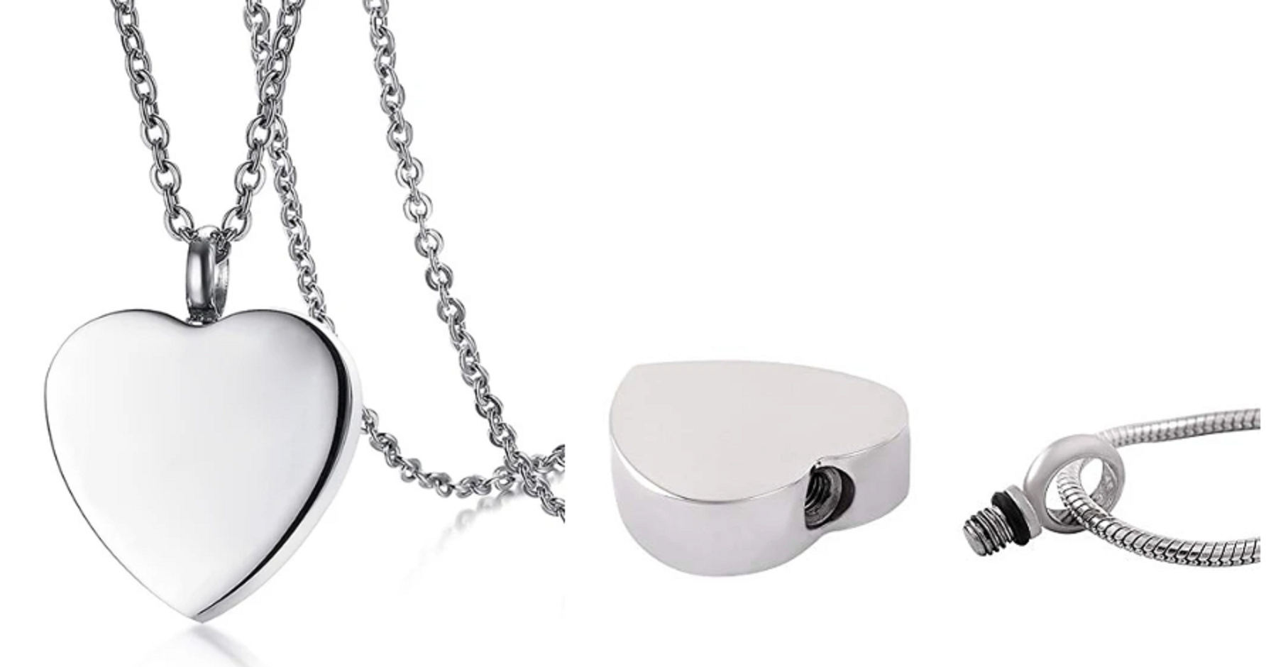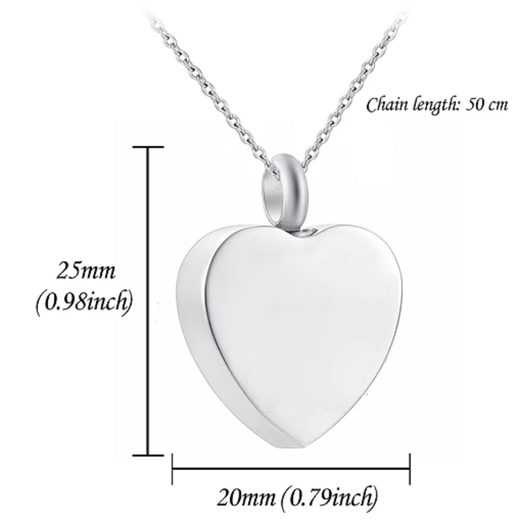 Description Commemorative urn pendant, Heart matt waterproof, Stainless steel 25 x 20 mm + chain 50 cm
