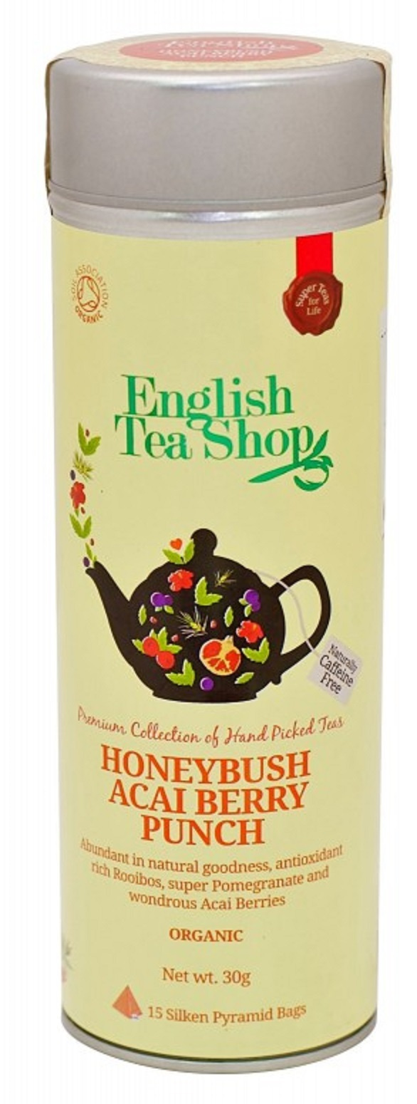 English Tea Shop Bio Rooibos Honey bush and Acai 15 pieces of biodegradable tea pyramids in a recyclable tin can 30 g