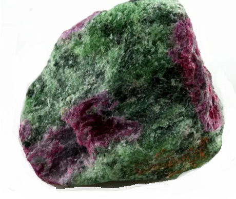 Tento kámen obsahuje malé krystaly rubínu, vrostlé do zeleného zoisitu.