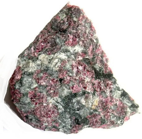 - Nefelínské syenity jsou bílé, našedlé, načervenalé a nazelenalé, velmi připomínající žulu s mnoha složkami: živcem draselným, zrnitým nefelinem, titanem, enigmatitem, chlorem, fluórem, fosforem a barevnými kovy, které určují barvu kamene. Je to zásaditá dotěrná hornina.