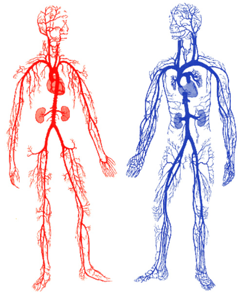 Oběh krve ze srdce do plic a zpět se nazývá plicní neboli malý krevní oběh , a oběh krve ze srdce do ostatních částí těla a zpět do srdce se nazývá systémový neboli velký krevní oběh. Jsou tedy plicní a systémové tepny, které odvádějí krev ze srdce, a plicní a systémové žíly, které ji přivádějí zpět.