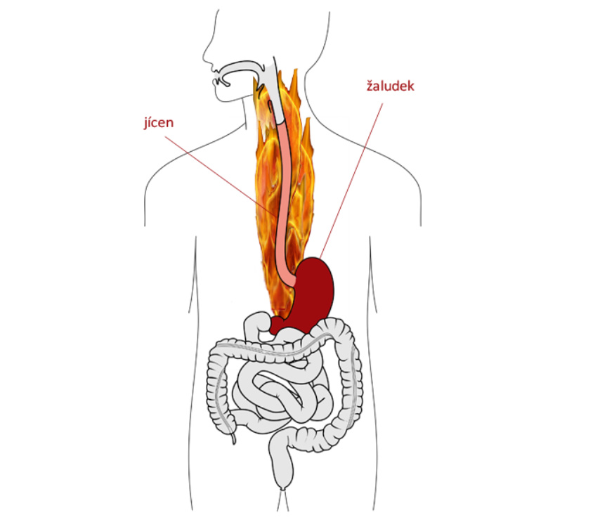 Jídlo, které zbaštíme, prochází našim jícnem do žaludku. V žaludku je jídlo tráveno za pomoci žaludečních šťáv (kombinace kyseliny chlorovodíkové a enzymů). Pokud má jícen narušený svěrač, který normálně pomáhá, aby se jídlo pohybovala z jícnu přímo do žaludku, stane se, že kyselina se do jícnu vrací zpět. Toto má za následek pálení žáhy, což se projevuje jako bolest horní části břicha, bolest na hrudi či kyselý pocit v ústech.