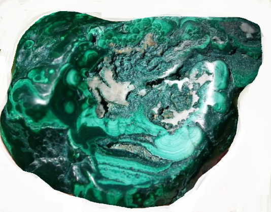 - malachit (zelený), světlé a tmavé pruhy, může být obrušovaný nebo leštěný. Užívejte leštěné formy, může být toxický.