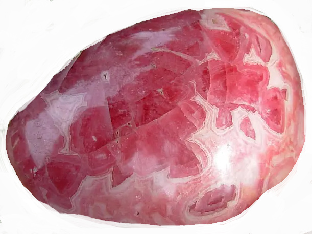 - rodochrozit (růžovooranžový), pruhovaná struktura, může být leštěný