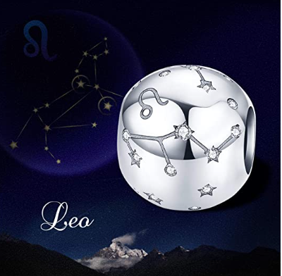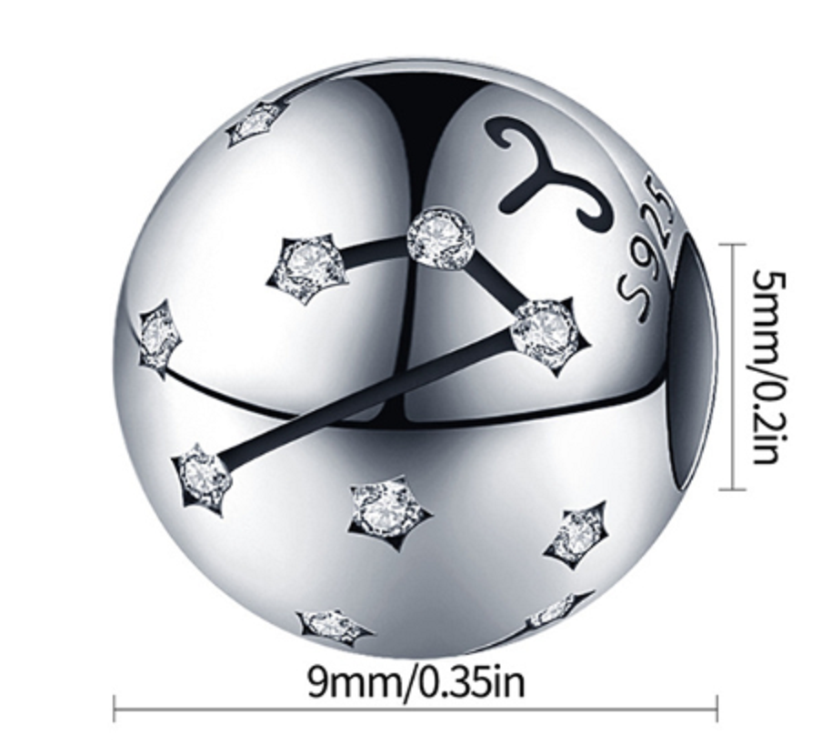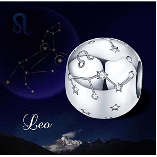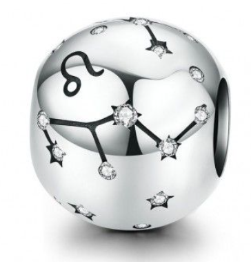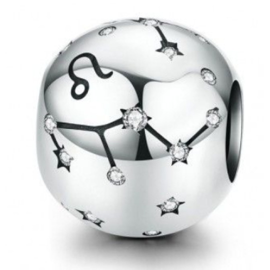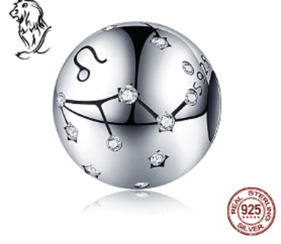 Leo zodiac sign, pendant for bracelet silver + cubic zirconia, ball 9 mm 1 piece