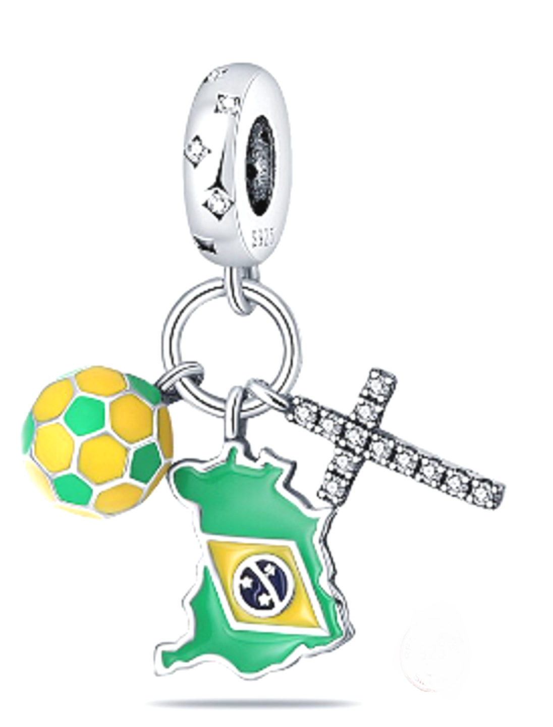 Úžasný přívěsek v podobě zeleného a žlutého přívěsku s brazilskou vlajkou, perfektní doplněk do vaší sbírky! Tento přívěsek je vyroben tak, aby vydržel a bude krásným doplňkem vašeho náramku. Se svým propracovaným designem jistě dodá nádech elegance každému outfitu. Kouzlo se vyznačuje detailním designem, který předvádí umění a preciznost našich řemeslníků, díky čemuž je perfektním dárkem pro někoho výjimečného nebo jako dárek pro vás. Ať už si chcete připomenout zvláštní okamžik nebo jednoduše dodat svému náramku jiskru, toto kouzlo určitě udělá dojem. Přidejte si ji tedy do své sbírky ještě dnes a užívejte si její nadčasovou krásu v nadcházejících letech!