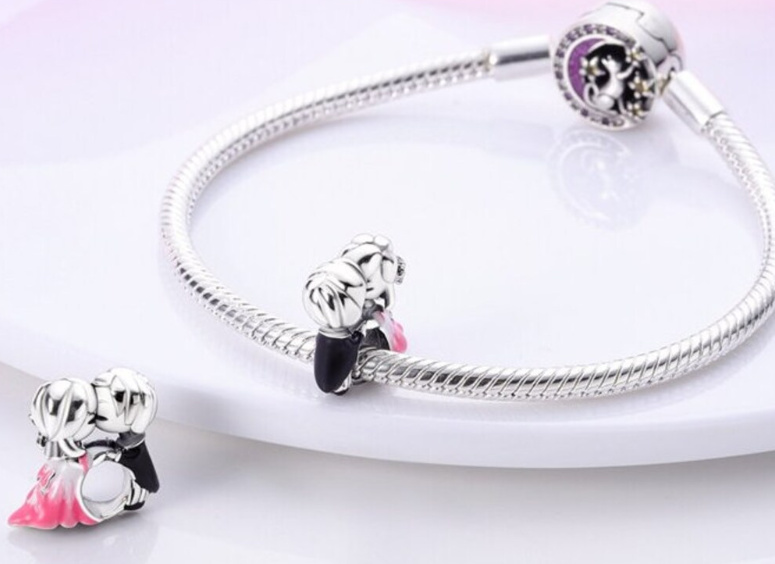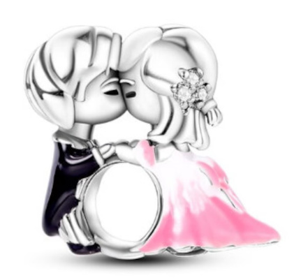 Přívěsek líbající se nevěstou a žeNichem, navržený s růžovým a černým smaltem a bílými třpytivými Zirkony.