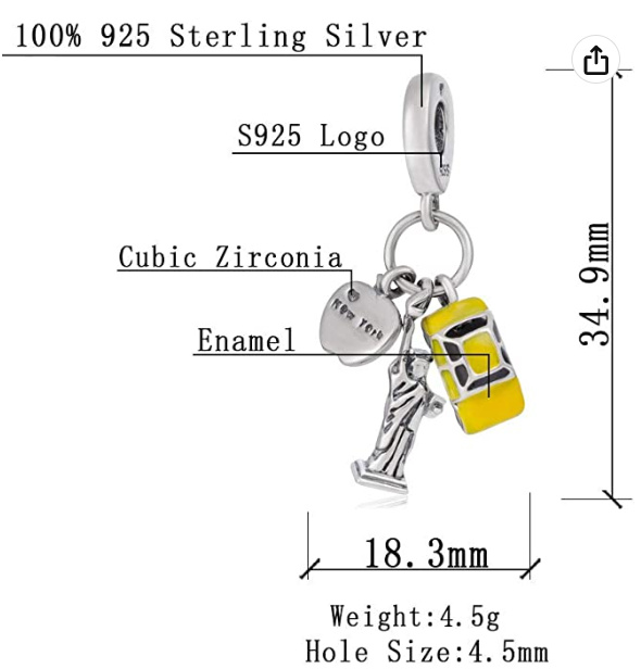 Přemýšlíte, co si přivezete z výletu z New Yorku? Kupte si tento přívěsek na náramek s motivem Sochy Svobody a žlutého taxi a vzpomeňte si na tento výlet, kdykoliv se podíváte na svůj náramek.