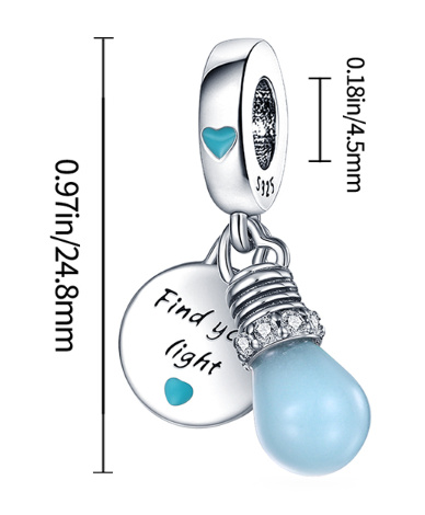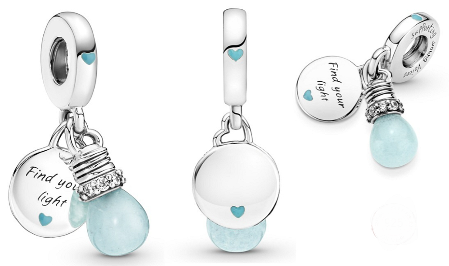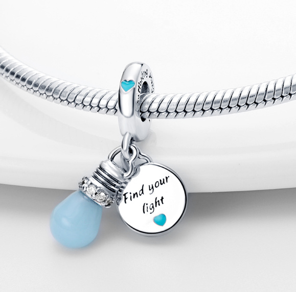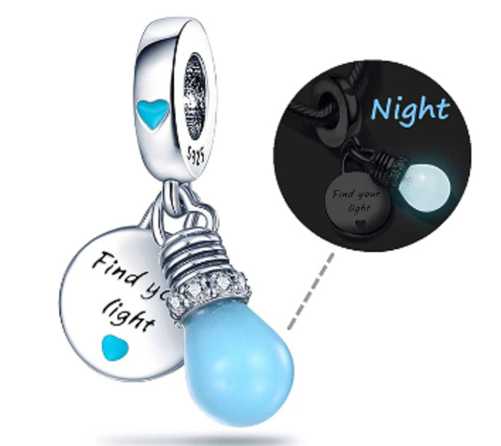Žárovka zářící ve tmě je inspirovaný novou generací bystrých myslí. Žárovka se v noci rozsvítí jako symbol naděje. Obroučku zdobí řada čirých kubických zirkonií. Na visací destičce je vyrytý citát „Find your light" - najdi své světlo. Na obou stranách je světlemodré smaltové srdce. Na očku je vyrytý nápis „Supporting young voices" - podpora mladých hlasů. Tímto přívěskem můžete vyjádřit podporu dětem na celém světě a umožnit jim dosáhnout jejich snů.