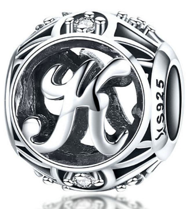 Písmeno abecedy, krásný přívěsek hodí ke všem náramkům Pandora, Tedora, Trollbeads nebo jiné náramky. Šperk, který je navlečen na náramek! Inspirováno písmeny, použijte je k vyhláskování jmen lidí, které máte rádi, nebo k vyhláskování slov, která umíte nejlépe vyjádřit.