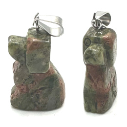 Description Unakit Dog pendant natural stone, hand cut figurine 1,8 x 2,5 x 8 mm, stone of personal growth and vision